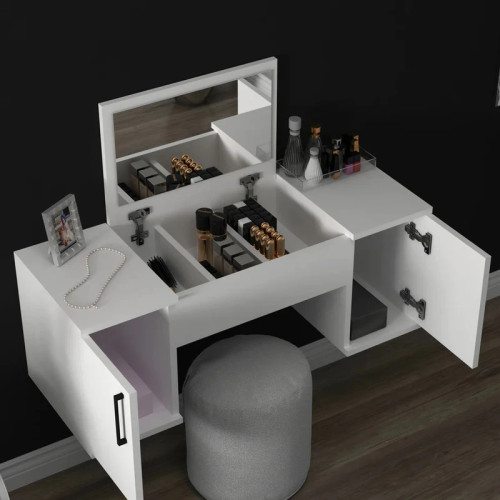 میز آرایش علاوه بر اینکه به عنوان یک وسیله برای آرایش و زیبایی استفاده میشود، میتواند به عنوان یک فضای کاری نیز مورد استفاده قرار گیرد. بسیاری از افراد از میز آرایش برای کارهای روزمره خود، مانند نوشتن، مطالعه و یا حتی به عنوان یک فضای برای مطالعه استفاده میکنند. همچنین، میز آرایش میتواند به عنوان یک فضای دکوری در اتاق خواب شما عمل کند. با قرار دادن لوازم دکوری و عکسهای خانوادگی روی میز، میتوانید به فضای اتاق خود زیبایی و حس شخصی بیشتری ببخشید. استفاده از میز آرایش همچنین میتواند به بهبود روال روزمره شما کمک کند. با داشتن یک فضای مشخص برای آرایش و آماده شدن، میتوانید زمان خود را بهینهتر مدیریت کنید و از هر لحظه لذت ببرید. شما میتوانید میز آرایش خود را با دیگر وسایل اتاق خواب هماهنگ کنید. به عنوان مثال، با انتخاب رنگ و طراحی مناسب، میتوانید میز آرایش خود را به عنوان یک عنصر مکمل در دکوراسیون اتاق خواب قرار دهید. انتخاب رنگهای مدرن مانند سفید و .....میتواند به فضای شما جلوهای مدرن و جذاب بدهد.