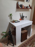 میز تحریر و لپ تاپ استفاده میباشد کشو دار و زیر کشو بغل دو طبقه کتابخانه دار میباشد روکش ام دی اف ضد خش فومنات و نوار پی وی سی با کیفیت است