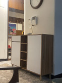 کنسول صنعت و هنر چوبی راگا چوب مدل کارولینا دارای پایه های چوبی، دو باکس طبقه دار ، یک باکس چهار طبقه بدون درب ، یک کشو و صفحه به طول 130 سانتیمتر، فضای کافی را برای چیدن ظروف و آینه در اختیار شما قرار می دهد. جنس محصول ملامینه میباشد.