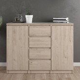 کنسول مدل IKE4513 جنس روکش از ملامینه میباشد و دارای دو درب با لولای آرام بند با کیفیت و دارای چهار کشو با ریل ساچمه ای با کیفیت و این کالا از استحکام و مقاومت بالایی برخوردار است و در رنگ بندی های زیبا و شکیل میباشد.