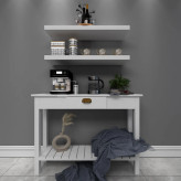 محصول مورد نظر کافی باری بسیار شیک و زیبا می باشد که برای خانه های با تم مدرن و نیو کلاسیک قابل استفاده است این محصول از جنس ام دی اف درجه یک می باشد و به راحتی لکه های قهوه و چای از روی آن تمیز می شود و همچنین دارای 2 طبقه برای قرار دادن دکوری، فنجان و.... است.