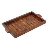 سینی چوبی تولید شده از چوب نراد روسی درجه یک همراه با دسته چوبی و رنگ قهوه ای با روکش نیم پلی استر جهت براقیت و زیبایی و آبگریز شدن کالا مناسب سرو و پذیرایی و دکوری تمام محصولات مستر روستیک قابل سفارش است.