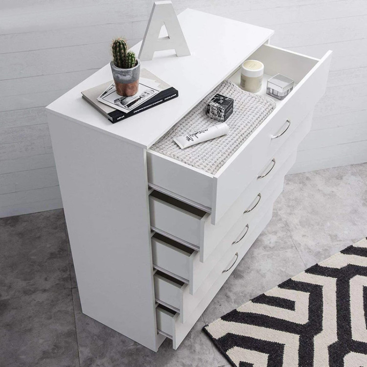 کشو های جادار دراور ۵ کشو ابعاد کمجا و با استحکام بالا ریل ساچمه ای سه زمانه لبه های کار پی وی سی یراق آلات درجه یک