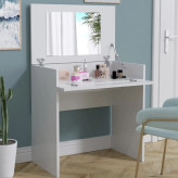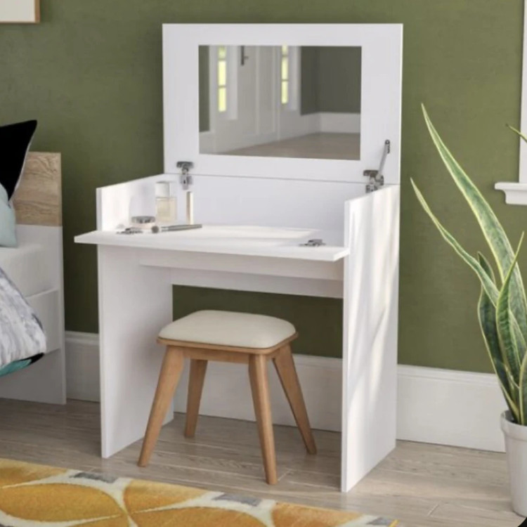 میز آرایش چند منظوره آیینه دار که در حالت بسته بودن درب به صورت میز هست و در صورت باز بودن درب آن میز آرایش جادار و بسیار کاربردی است جنس چوب به کار رفته شده لترون روکش ملامینه ضد خش درجه یک میباشد تمام محصولات راگا چوب قابل سفارش است درابعاد ورنگبندی مختلف.