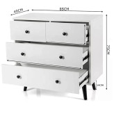 دراور چهار کشو مدل 900055جنس روکش ام دی اف ضد خش میباشد و کشو ها با ریل ساچمه ای با کیفیت دستگیره فلزی مستحکم در سه رنگ گردویی ، سفید و آنتیک طلایی زیبا و شکیل میباشد.