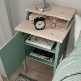 میز کنار تخت 2000040 فرم جادار آن از مراسم قبل از خواب شما پشتیبانی می کند، از شارژ کردن تلفن تا ذخیره کتاب ها و مجلات شما. با الهام از طراحی سنتی اسکاندیناوی با بیانی گرم و اصلی. ترکیب چوب جامد و سبز ملایم نیز رنگ و بویی به اتاق خواب شما می بخشد. پاتختی دارای فضای بسته برای ایجاد حس آرامش در اتاق و دو سطح فضای باز برای وسایلی است که می خواهید به راحتی به آنها دسترسی داشته باشید. به دلیل ارتفاع آن، برای استفاده با تخت ه ...