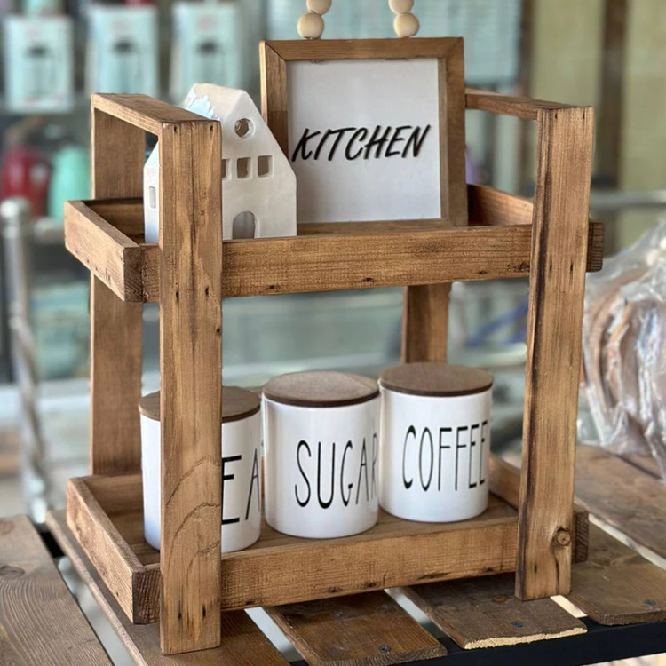 شلف رومیزی مستر روستیک مدل دو طبقه چوبی
