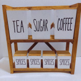 این استند که به صورت دو طبقه می باشد دارای جنس تمام چوبی با کیفیت چوب درجه یک گردو و مناسب برای نظم دادن به انواع بانکه ها ، ظروف جا ادویه و همچنین لوازمی مانند ماگ ها یا لوازم آرایشی روی میز آرایش و سایر لوازم می باشد که بسته به دکوراسیون و نیاز شما می توانید از این استند استفاده کنید