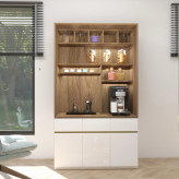 کافی بار مدرن راگا ، با ابعاد 210 در 120 به عمق 45 سانتیمتر و بدنه تمام امدیاف ، دارای سه درب، سه کشو و شلف کافیبار میباشد. کیفیت تضمین شده و طراحی فوق العاده شیک این محصول، نمای لوکسی به خانه شما خواهد بخشید. رنگبندی این کافی بار به صورت ترکیب سفید و گردویی بوده و تغییر رنگ در قسمت سفید اعمال میشود قیمت بالا این محصول به دلیل کیفیت بالا ام دی اف است و جنس های دیگر موجود می باشد زمان تحویل این محصول سه روزه است.