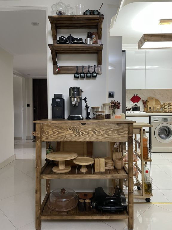 اطمینان حاصل کنید که همه ی بشقاب ها و لوازم آشپزی شما جایی در قلب خانه دارد با وجود این میز کارآمد که راه حل مناسبی برای سر و سامان دادن به وسایل و ارگنایز کردن فضای آشپزخانه می باشد. ساخته شده از چوب نراد درجه یک و پوشش روغن طبیعی همل ترک که علاوه بر ایجاد آبگریزی و مقاومت در برابر خط و خش ، حس و حال طبیعی چوب را به خوبی نمایان میکند. این محصول شامل دو عدد شلف بالا که دارای دیواره برای ایمنی لوازم و شلف پایین می باشد که فضای بسیار زیادی ایجاد میکند. همچنین جا حوله ای برا ...