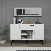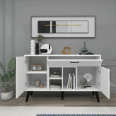 کنسول مدل IKE4599 جنس روکش از ملامینه میباشد و دارای سه عدد درب با لولای آرام بند با کیفیت و پایه های پلاستیکی با رنگ مشکی و همچنین مقاوم و این کالا از استحکام و مقاومت بالایی برخوردار است و در رنگ بندی های زیبا و شکیل میباشد.